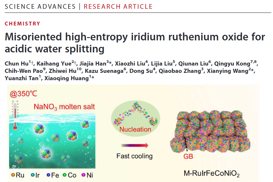 Artical Link: Misoriented high-entropy iridium ruthenium oxide for acidic water splitting | Science Advances